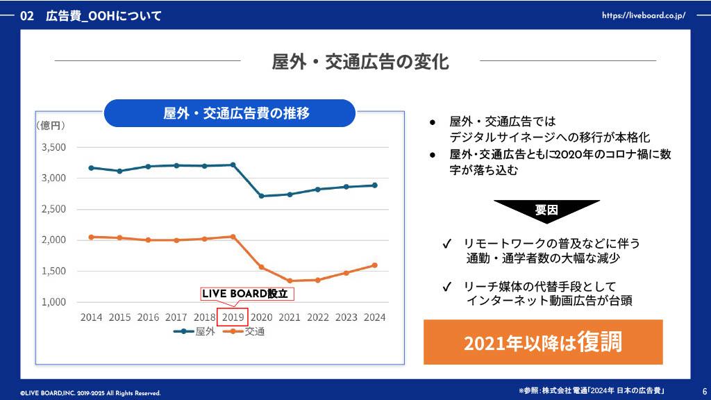 2025年2月に株式会社電通が発表した「2024年 日本の広告費」をLIVE BOARDがOOHの視点から分析を行いました。