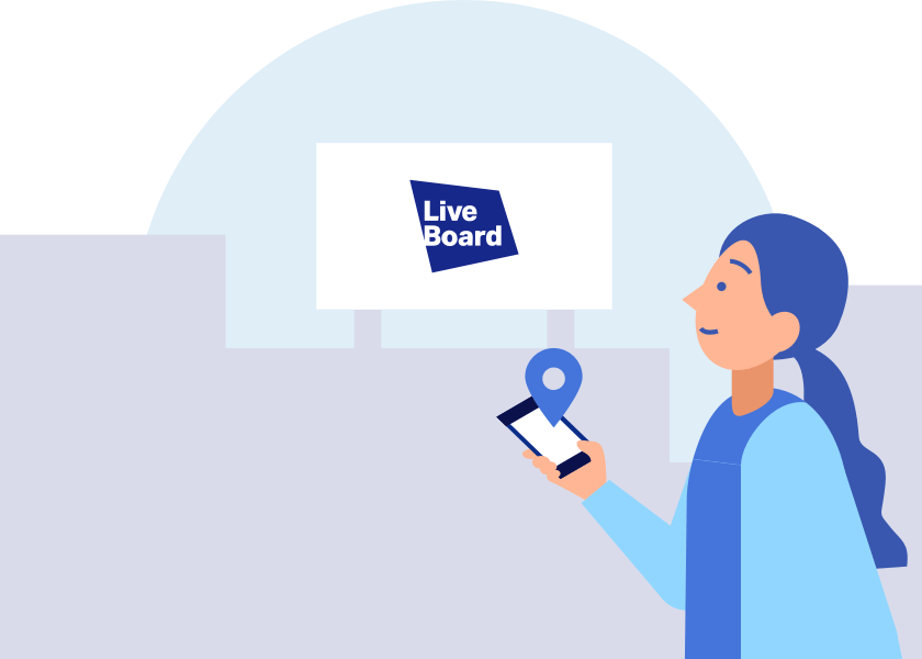ドコモモバイル空間統計®※2やその他位置情報等とLIVE BOARD Networkを組み合わせることで、ターゲットの行動経路上に、ターゲットの行動時間帯に合わせて広告を配信するといったことが実現できます